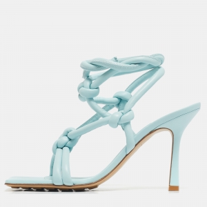 Bottega Veneta Size 40 Blue Leather Knotted Ankle Strap Sandals