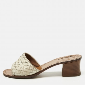 Bottega Veneta Beige Intrecciato Leather Flat Slides Size 40