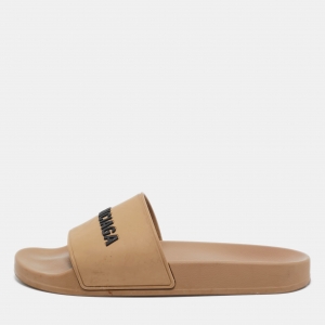 Balenciaga Beige Rubber Mono Platform Slides Size 36
