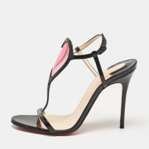 Christian Louboutin Black Patent Leather/Mesh and Lace Fortitia Ankle Strap Sandals Size 36.5