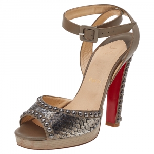 Christian Louboutin Silver Crinkled Leather And PVC Asticocotte Ankle Strap Sandals Size 35
