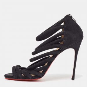 Christian Louboutin Black Leather and Lace Volumetric Ankle Strap Sandals Size 35