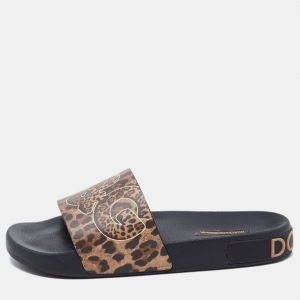Dolce & Gabbana Brown Leather DG Bianca Slide Sandals Size 36