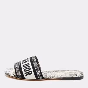 Dior Dway Size 38 Cream/Grey Canvas Slide Sandals