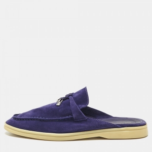 Loro Piana Blue Suede Babouche Charms Walk Flat Mules Size 39