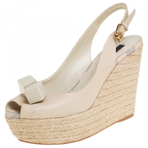 Louis Vuitton White/Beige Damier Azur Canvas and Leather Wedge Sandals Size 37