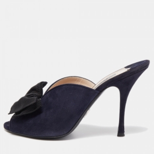 Prada Black Saffiano Vernice Leather Bow Pointed Toe Mules Size 39