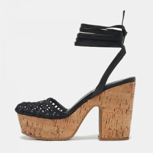 Prada Olive Green Suede and Raffia Wedge Ankle Wrap Sandals Size 41
