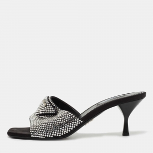 Prada Mint Green Saffiano Vernice Leather Crystal Embellished Slide Sandals Size 41