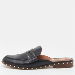 Valentino Black Leather Rockstud Mules Size 38