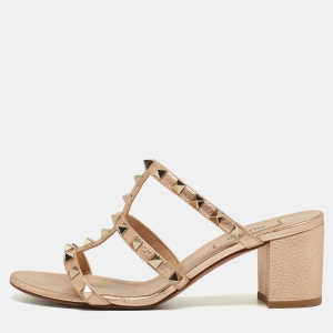 Valentino Beige Leather Rockstud Mules Size 39