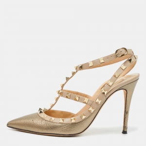 Valentino Beige Leather Rockstud Pointed Toe Mules Size 39.5