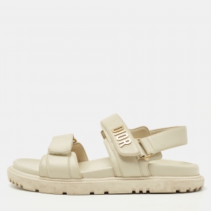 Dior Cream Leather DiorAct Flat Sandals Size 37.5