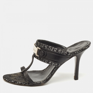 Dior Black/Gold Fabric Dway Slide Sandals Size 37.5