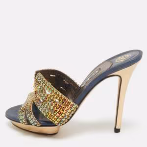René Caovilla Cleo Size 39 Multicolor Leather and Satin Ankle Strap Sandals