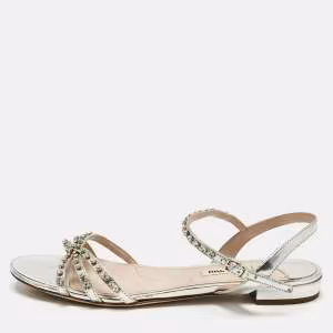 Valentino Tan-Go Size 37 Silver Suede Crystal Embellished Ankle Strap Sandals
