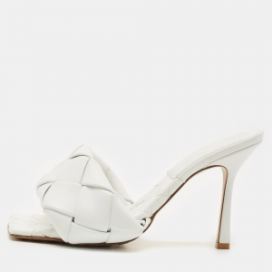 Bottega Veneta White Intrecciato Leather Lido Slide Sandals Size 39.5