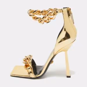 Versace Medusa Chain Size 36 Pink Satin Ankle Strap Sandals