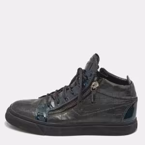 Giuseppe Zanotti Black Croc Embossed Leather High Top Sneakers Size 35.5