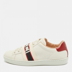 Gucci White Leather And Fabric Web Ace Low Top Sneakers Size 38