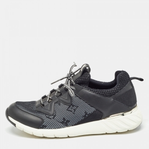 Louis Vuitton Black/Brown Mesh and Monogram Canvas Run Away Sneakers Size 36