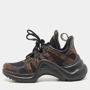 Louis Vuitton Black/Brown Mesh and Monogram Canvas Run Away Sneakers Size 36