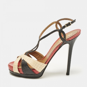 Fendi Multicolor Fendista Colorblock Lizard-Embossed Leather Peep Toe Pumps Size 40