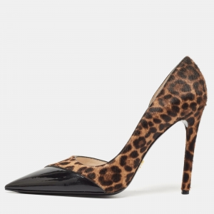 Prada Brown Crackled Leather Studded Peep Toe Platform Singback Pumps Size 37