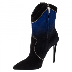 Loriblu Black/Blue Ombre Pony Hair High Heel Boots Size 40
