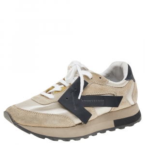 Off-White Beige/Black Fabric And Suede Arrow Running Low Top Sneakers Size 37
