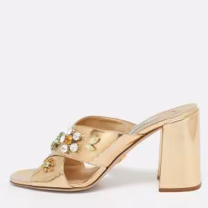 Prada Multicolor Python Leather And Embossed Leather Ankle Strap Sandals Size 38
