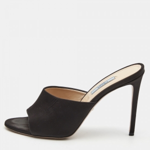 Prada Black Satin Crystal Embellished Logo Slide Sandals Size 39.5