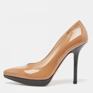 Prada Beige Patent Leather Peep Toe Slingback Pumps Size 40