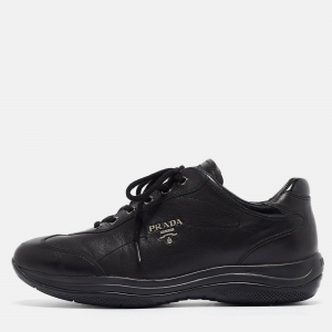 Prada Sport Black Leather and Mesh Low Top Sneakers Size 39