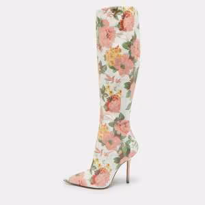 Vetements Multicolor Floral Print Leather Over The Knee Boots Size 39