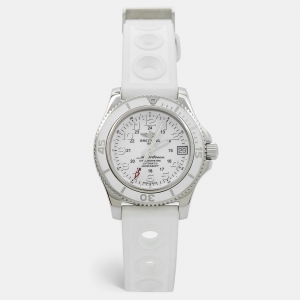 Breitling White Stainless Steel Rubber Superocean II A17312D2 Women's Wristwatch 36 mm