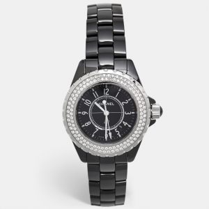 Chanel Black Ceramic Stainless Steel Diamond J12 H0949 Women's Wristwatch 33 mm