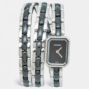 Chanel Premiere H3058 Black Dial Ceramic Stainless Steel Diamond Women's Wristwatch 15 mm