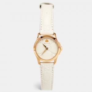 Gucci White Gold Plated Stainless Steel Leather G-Timeless 126.4 Women's Wristwatch 38 mm