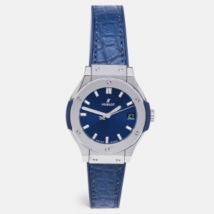 Hublot Navy Blue Titanium Classic Fusion 585.NX.7170.NX Automatic Women's Wristwatch 33 mm