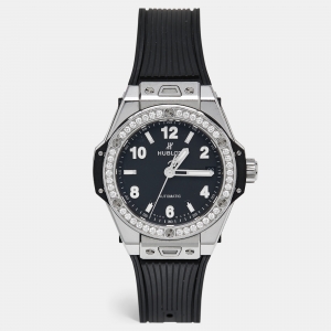 Hublot Black Stainless Steel Diamond Rubber Big Bang One Click 465.SX.1170.RX.1204 Women's Wristwatch 39 mm