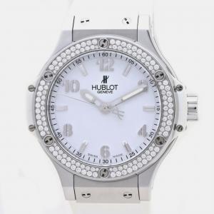 Hublot White Stainless Steel Diamond Big Bang 361.SE.2010.RW.1104 Quartz Women's Wristwatch 38 mm