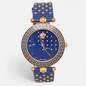 Versace Aqua Blue Rose Gold Plated Stainless Steel Leather V Signature VLA080014 Women's Wristwatch 35 mm