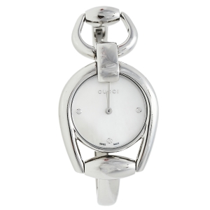 Gucci White Mother of Pearl Stainless Steel Diamond G Series 125.5 Women's Wristwatch 24 mm
