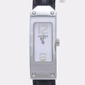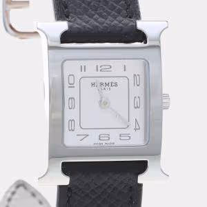 Hermes White Stainless Steel Calfskin Leather Heure H 036702WW00 Women's Wristwatch 21 mm